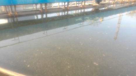 生物增效前二沉池浮泥情况 生物增效后二沉池浮泥情况