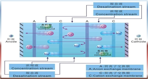 EDR,即频繁倒极电渗析,是一个电化学分离过程,溶液在交替放置的阳离子交换膜和阴离子交换膜之间流过,在外加直流电场作用下,以电位差为驱动力,利用离子交换膜对溶液中离子的选择透过性,使溶液中溶质和溶剂分离的膜过程,从而达到脱盐或浓缩的目的。