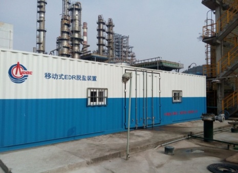 在中海石油舟山石化有限公司和榆林炼油厂循环冷却排污水分别建成了20m3/h的 EDR脱盐处理炼化废水回用于循环冷却水示范工程,稳定运行30多月, 脱盐率平均达到77.5%,其中碱度和总硬的去除率达到75-85%,Cl-去除率达到85-90%,同时对COD和氨氮也有一定的出去效果。