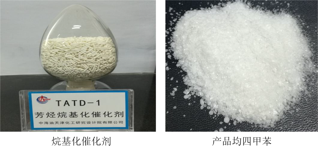 本技术采用自主开发的 TATD-1 催化剂,以偏三甲苯、甲醇为原料,通过择形烷基化反应生产均四甲苯,具有芳烃单程转化率高、均四甲苯选择性高、催化剂稳定性高的特点。